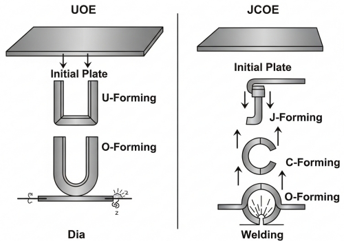 What is the difference between UOE and JCOE forming methods?
